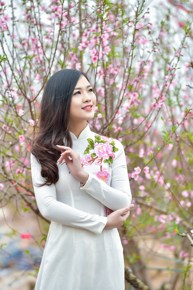 Old  Default Ngắm nhìn vẻ đẹp tươi tắn, mơn mởn của cô gái bên nhánh đào ngày xuân