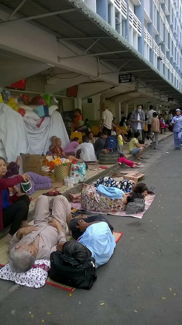 Hình ảnh bệnh nhân tại Bệnh viện Ung Bướu Hồ Chí Minh: Thay vì nằm trong phòng, họ chuyển ra nằm ngoài trời để được tự do lăn lóc, tự do mỗi người một giường rộng rãi và ngắm mây trời thoải mái. Còn trong phòng chờ thì ngập lụt. Phải nói rằng, thời đại Hồ Chí Minh là thời kỳ rực rỡ nhất trong lịch sử Việt Nam.