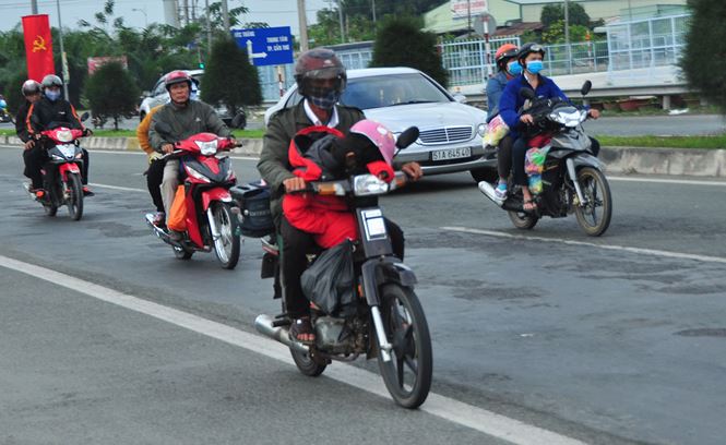 Ghi nhận của phóng viên Tiền Phong vào sáng sớm (19/2) trên quốc lộ 1A địa bàn tỉnh Hậu Giang, Cần Thơ, Vĩnh Long… đông nghẹt người dân chạy xe gắn máy, chở theo vợ con và đồ đạc lỉnh kỉnh quay trở lại Sài Gòn làm việc sau kỳ nghỉ Tết Nguyên đán.