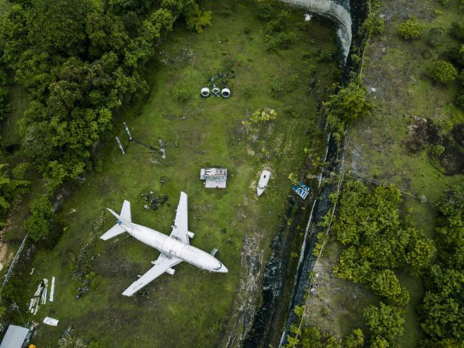 Bao quanh bởi những thùng hàng và lều trại tồi tàn trên một cánh đồng ở Bali, chiếc máy bay Boeing 737 bị ai đó bỏ rơi khiến nhiều người tò mò và đã trở thành một địa điểm thu hút khách du lịch.