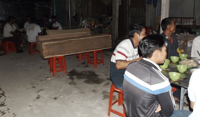 Từ tối qua đến sáng nay (24/2), rất đông người dân đến đám tang 2 người con gái xấu số của anh Huỳnh Phi Hùng (38 tuổi, ấp Hóa Thành 1, xã Đông Thành, thị xã Bình Minh, tỉnh Vĩnh Long). Tại đây, người dân chia buồn và động viên gia đình anh vượt qua khó khăn.