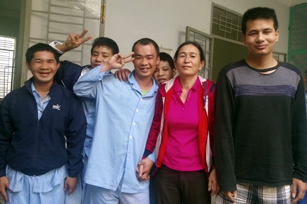 Chị Thủy (thứ hai từ phải sang) trong một lần đến tặng quà cho bệnh nhân Bệnh viện Tâm thần Đà Nẵng. Ảnh: Pháp luật Plus