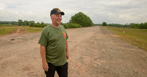 Ông Paul Baviello đứng giữa đường băng chạy xuyên qua căn cứ An Hòa trước kia. Ảnh: Stars and Stripes