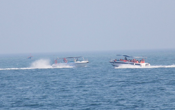 Ca nô cao tốc đang đưa khách từ đảo Lớn - đảo Bé và ngược lại.