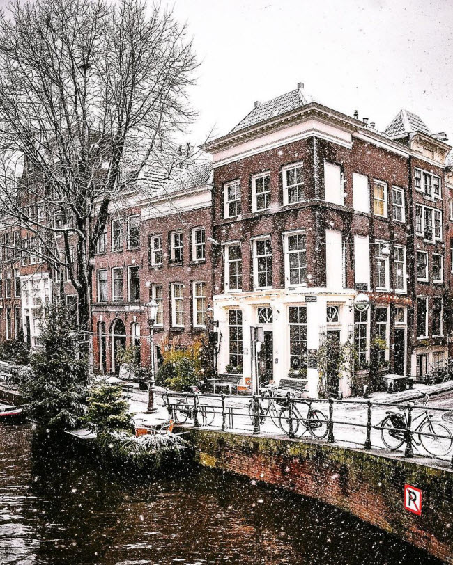 Mưa tuyết khiến thành phố Amsterdam trông như một vương quốc mùa đông trong truyện cổ tích.