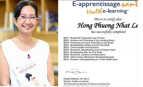 Theo thông tin trên mạng xã hội, bà Hồng cũng tiên phong trong việc sở hữu hàng loạt các chứng chỉ quốc tế về sữa mẹ như Chuyên gia Tư vấn Nuôi Con Sữa mẹ của Viện Sữa Mẹ Quốc tế (International Institute of Human Lactation Inc, Canada) - 7/2013, Thực hành và Vận động Nuôi con Sữa mẹ của Tổ Chức Hành Động vì Nuôi con Sữa mẹ Thế giới (WABA) - 11/2013, Chứng nhận hoàn thành khóa học "Food as Medicine" của ĐH Monash (khóa học online có thời lượng 12 giờ), chứng chỉ tham gia hoạt động "Introduction to Food and Health" của ĐH Stanford (khóa học miễn phí thời lượng 2,5 giờ), khóa học "Programming for Infant and Young Child Feeding" (thời lượng 14 giờ)...