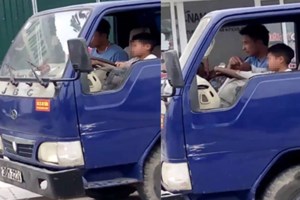 Trước đó, mọi người đã lan truyền nhau một đoạn clip ghi lại cảnh một cháu bé cầm vô lăng lái chiếc xe tải trên mạng xã hội.