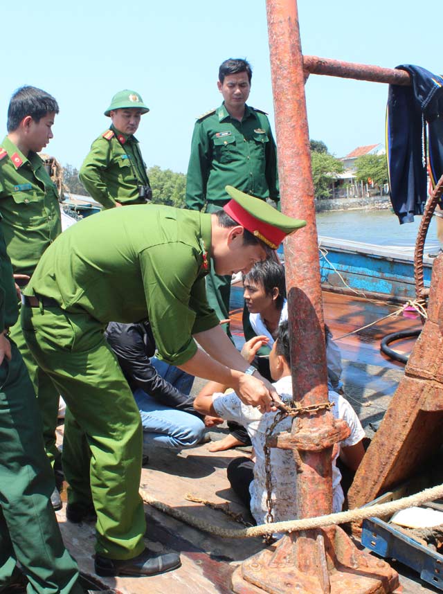 Theo khai nhận của các người liên quan, 4 ngư dân Toàn, Thanh, Quang và Phước là thuyền viên đi trên 2 tàu cá của ông Tiến, hành nghề lưới kéo trên vùng biển thuộc khu vực đảo Bạch Long Vĩ, TP.Hải Phòng từ ngày 13.3 đến nay. Ông Tiến đã ứng trước cho 4 ngư dân trên số tiền khoản 28 triệu đồng. Tuy nhiên, trong quá trình làm việc 4 ngư dân này không đủ sức khỏe để lao động nên buộc ông Tiến phải đưa tất cả họ về lại Quảng Ngãi. Vì sợ khi đưa về đến nơi thì Toàn, Thanh, Quang và Phước trốn nợ nên ông Tiến cùng một số người khác đi cùng tàu đã bắt giữ và xích 4 ngư dân lại để đòi nợ.