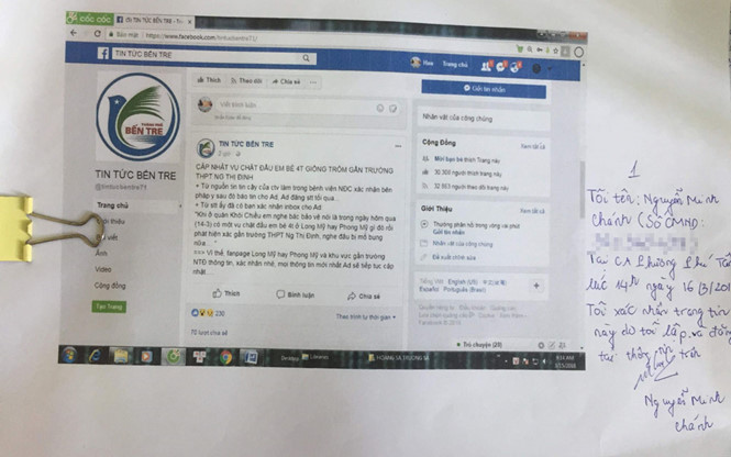 Trong 2 ngày (14 và 15/3), trên trang Fanpage “Tin tức Bến Tre” do Chánh làm chủ tài khoản có đang tin “Chặt đầu em bé 4 tuổi ở Giồng Trôm, gần trường THPT… Chủ tài khoản Chánh còn khẳng định “Nguồn tin cậy từ BV Nguyễn Đình Chiều”. Sau khi thông tin xuất hiện trên Facebook cá nhân Chánh, Thanh tra Sở TT-TT tỉnh phối hợp cơ quan nghiệp vụ Công an tỉnh xác minh vụ việc và khẳng định đây là thông tin thất thiệt.