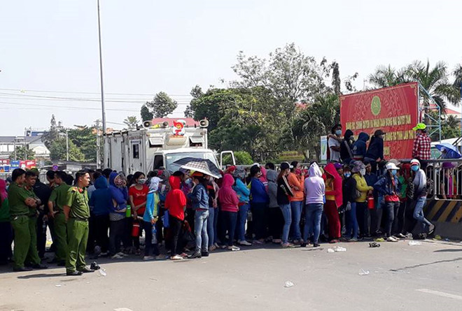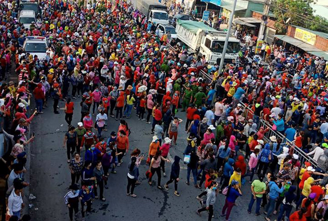 Từ sáng sớm, hàng nghìn công nhân tràn ra quốc lộ. Ảnh: N.Đ.N