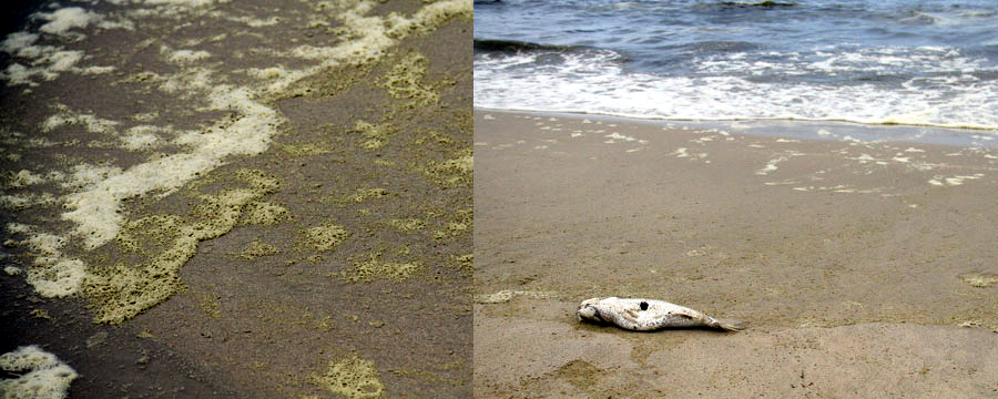 Chiều tối thứ Bảy ngày 24/3, người dân sinh sống xung quanh khu vực đường biển Nguyễn Tất Thành, thuộc quận Thanh Khê và quận Liên Chiểu, thành phố Đà Nẵng tỏ ra vô cùng lo lắng khi phát hiện tình trạng nước biển tại khu vực này chuyển màu lạ và có mùi hôi rất khó chịu. Những đợt sóng biển đánh vào bờ có màu vàng, đỏ sẫm kèm theo những lớp bọt đen cũng như xuất hiện một số ít cá thể cá chết trôi vào bờ.