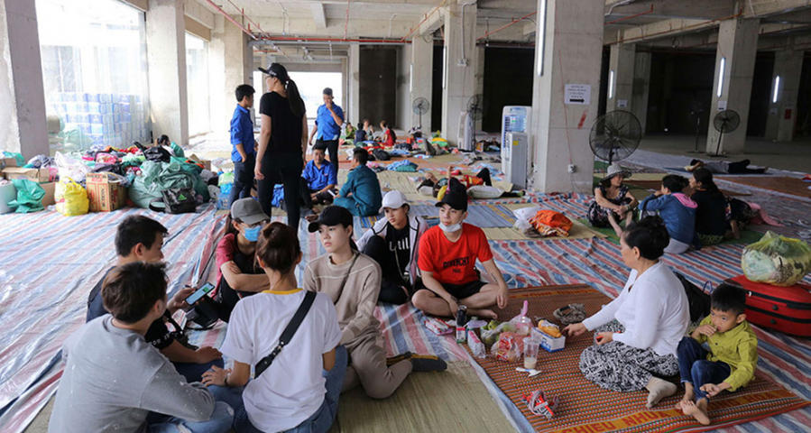 Những người dân sau vụ cháy phải ở tạm phía ngoài