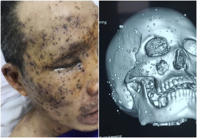 Một bệnh nhân bị cả trăm mảnh kim loại găm vào mặt. Nạn nhân N bị các mảnh vụn kim loại găm vào vùng mặt. Bệnh viên đa khoa tỉnh Quảng Ninh cho biết đã phẫu thuật thành công trường hợp này.