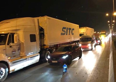 Old  Default Bất chấp ùn tắc, tài xế bỏ mặc xe container chết máy
