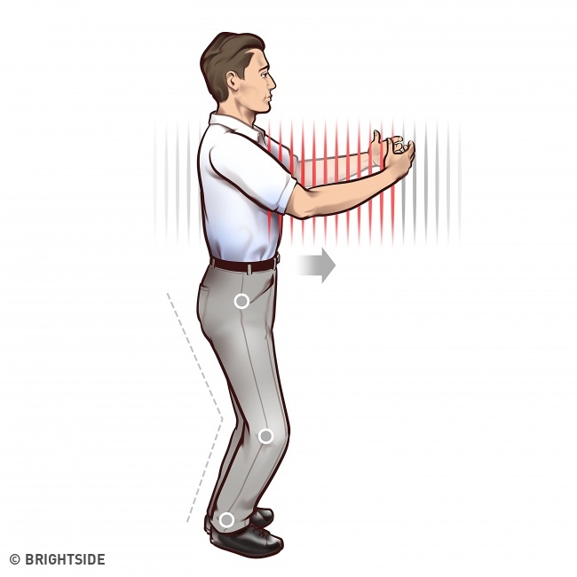 Khi thực hiện, bạn đứng thẳng, đầu gối hơi chùng xuống, 2 tay để ngang ngực và bắt đầu hít vào từ từ. Thực hiện bài tập này mỗi ngày trong 2-5 phút.