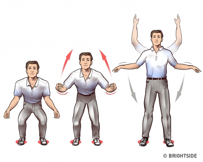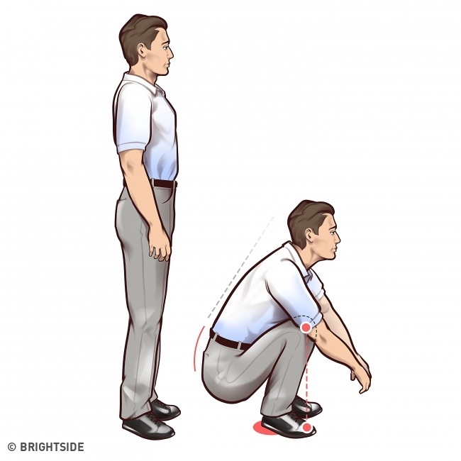 Bạn chỉ cần đứng thẳng và ngồi xổm xuống như trong hình, thực hiện 10 lần mỗi ngày với người mới bắt đầu. Sau đó, lắng nghe cơ thể và bắt đầu tăng dần nhịp độ.