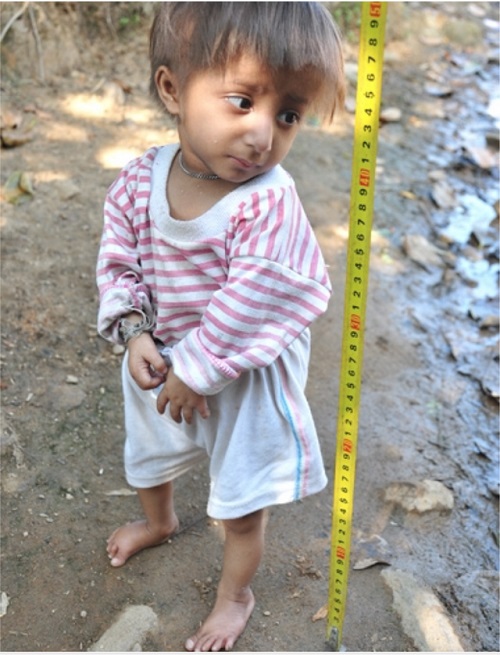 Vào khoảng tháng 8.2012, cũng như mọi người, lần đầu tiên không ai là không ngỡ ngàng và thương cảm. Hình ảnh đó mãi mãi không thể nào quên, một cái đầu nhỏ nhắn nhô ra khỏi cái khăn quàng trên cổ một phụ nữ, cứ tưởng là một chú khỉ con. Nó ngơ ngác như mẹ nó nhìn đoàn người lạ lên thăm bản nó. Lúc đó chúng tôi lại hỏi thăm thì nó… Trời ơi, một đứa trẻ! Qua hỏi thăm tình hình tôi buột miệng: