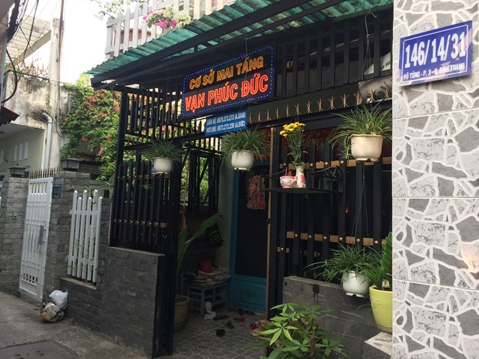 Cơ sở mai táng Vạn Phúc Đức trong con hẻm sâu.