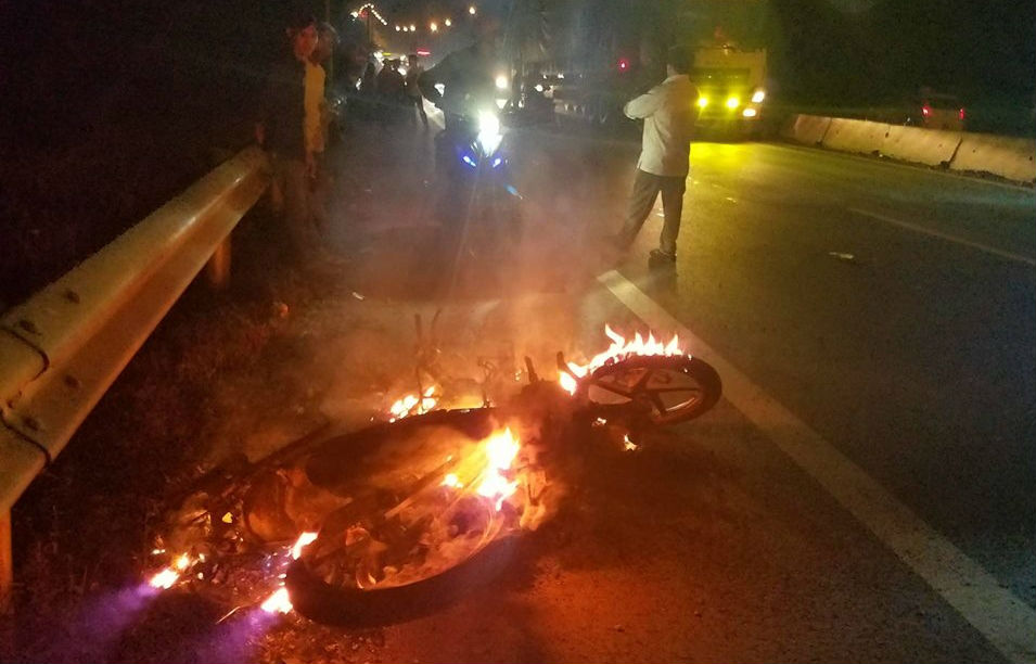 Lúc này anh T. cùng người bạn xuống xe nhưng không giúp đỡ nạn nhân hay dập lửa xe máy đang cháy mà gây sự, đập vỡ điện thoại của một người đàn ông đi xe SH mang biển số 15N1 – 178... khi thấy người này đang quay phim lại sự việc.