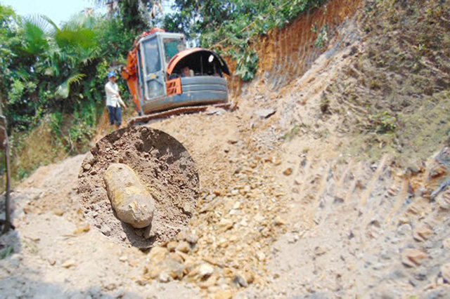 Quả bom phát lộ sau hàng chục năm nằm im lìm trong lòng đất. Ảnh: ST