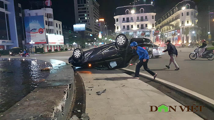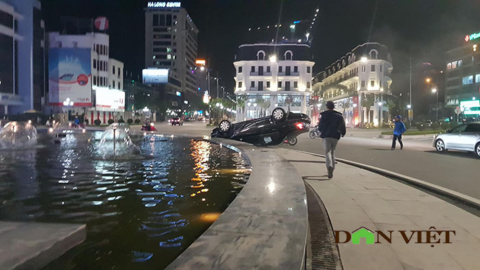 Khoảng 21h45 ngày 16/4 một chiếc xe ô tô 4 chỗ bất ngờ lao vào vòng xuyến bao quanh Cột đồng hồ TP.Hạ Long (Quảng Ninh) rồi lật nhào khiến một thanh niên bị mắc kẹt trong xe.