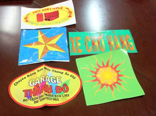 Vân in logo "Xe chở hàng" bán với giá 2,2 - 2,3 triệu đồng/logo/tháng. Ngoài ra, ai mua thêm logo in hình ông mặt trời hoặc hình ngôi sao với giá 500.000 đồng/logo/tháng sẽ được Vân bao quá tải thêm một số tuyến đường trên địa bàn Đồng Nai, Bình Dương.