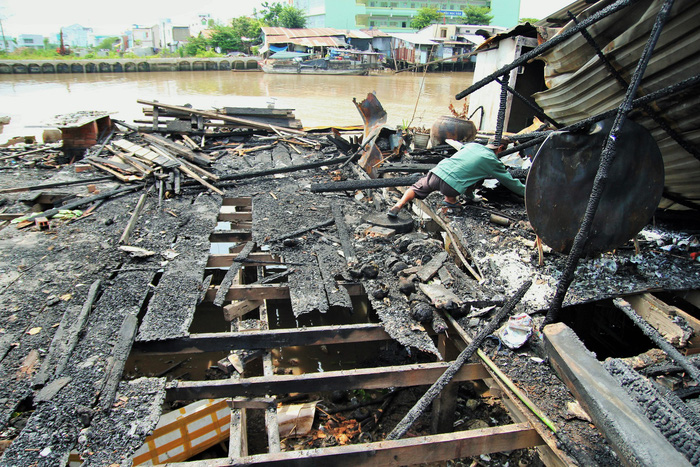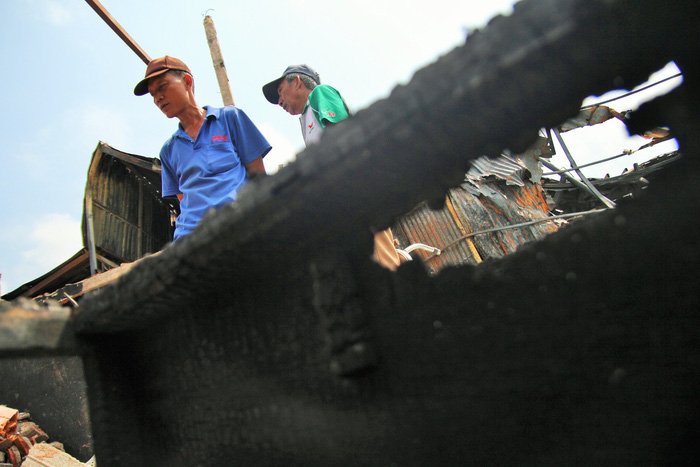 Cạnh nhà bà Loan, nhà ông Nguyễn Khiêm bị cháy rụi, thiệt hại 1,2 tỉ đồng. Ông cho biết nhà ông đã ở đây ổn định từ năm 1968 đến nay.