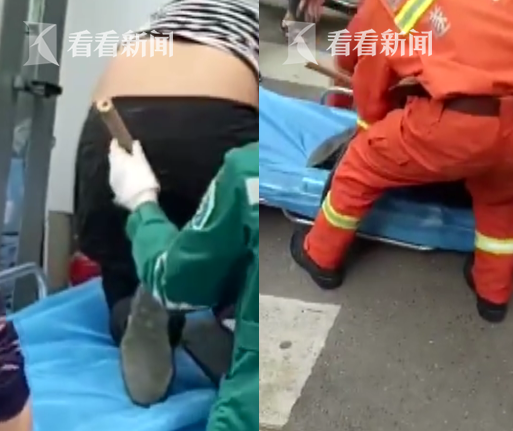 Vào khoảng 4h chiều 27/4, trong lúc treo biển quảng cáo trên một cây cầu tại huyện Xạ Hồng, thành phố Toại Ninh, tỉnh Tứ Xuyên (Trung Quốc), một thanh niên bất ngờ nhảy xuống dưới và bị một cây tre đâm vào mông.