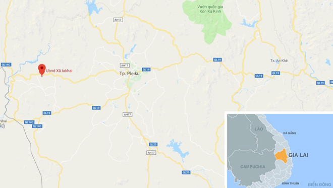 Xã Ia Khái, huyện Ia Grai (chấm đỏ) nơi xảy ra vụ việc. Ảnh: Google Map