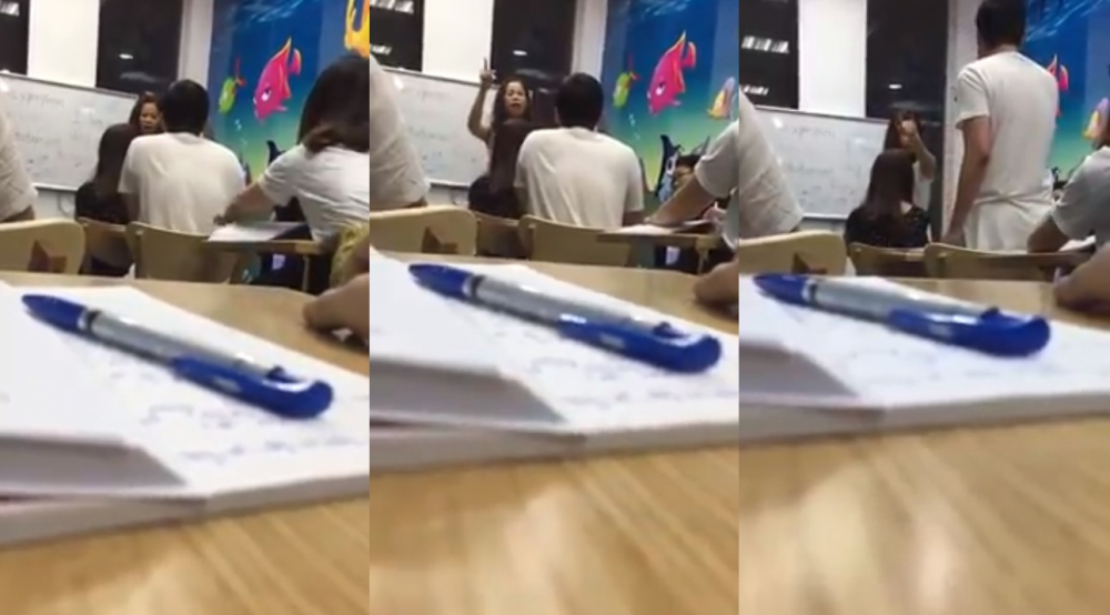 Không đồng ý bỏ qua, cô giáo còn đập bàn ra lệnh: "Anh không nói nữa, anh dừng lại, một là anh đóng phạt, hai là lớp dừng lại. Đây không phải là lần đầu tiên của anh".
