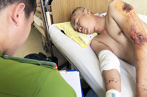 Hướng dẫn viên du lịch dù đã hồi tỉnh nhưng trên người vẫn dầy đặc vết thương. Ảnh: VNE