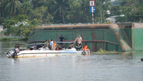 Theo anh C., cả gia đình 5 người thường xuyên di chuyển trên thuyền, trong đó mẹ anh, chị D. là người cầm lái và nhiều năm nay không có sự việc gì xảy ra. "Nhưng vào rạng sáng 18/5, khi đang đẩy sà lan vào bờ, tôi nghe tiếng sóng đánh mạnh. Sau đó, chiếc sà lan nghiêng rồi úp lên tàu. Mẹ, em trai và bà ngoại tôi không kịp thoát thân", anh C. thất thần kể lại khi đứng bên thi thể em trai mình.