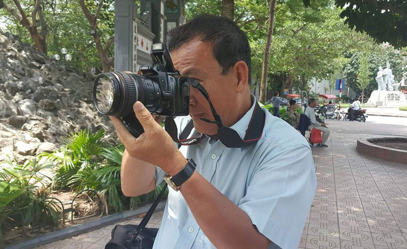 Ông Nguyễn Văn Thái có gần 40 năm kiếm sống bằng nghề chụp ảnh dạo hồ Gươm.
