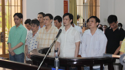 Long Thanh cùng đàn em tại phiên tòa xử tội danh Tổ chức đánh bạc và Đánh bạc năm 2011. Ảnh: Thái Hà