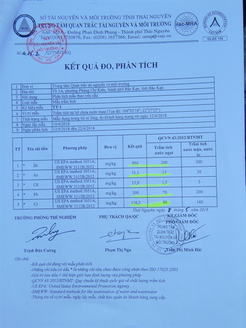Kết quả mẫu phân tích vượt quá mức cho phép nhiều lần