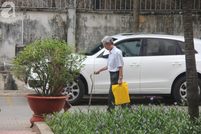 Bị cáo Nguyễn Khắc Thủy chống gậy di chuyển vào tòa. Ảnh Thời đại