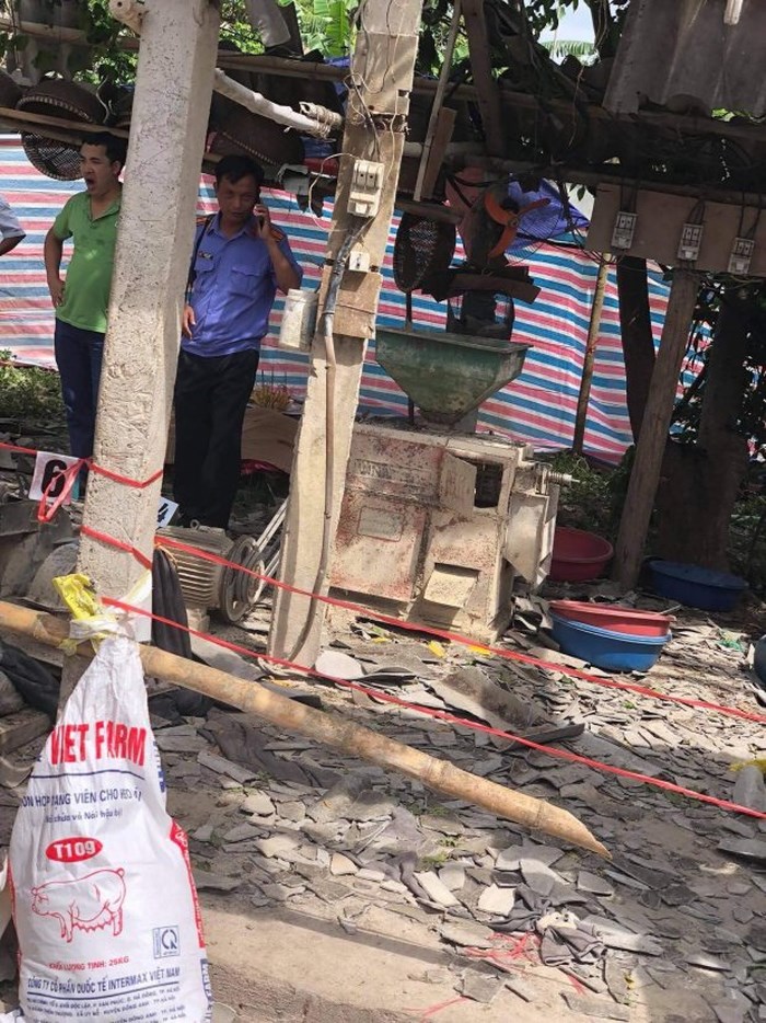 Hậu quả, chủ máy và người khách đến nghiền bột tử vong tại chỗ. Ngôi nhà cấp 4 vỡ vụn, chỉ còn trơ khung.