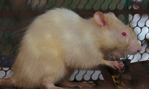 Chuột cống toàn thân có màu trắng được người dân nuôi làm cảnh: Ảnh: Hoàng Nam.