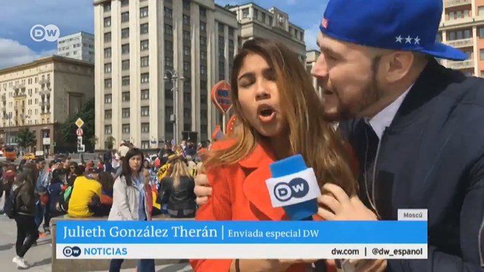 Nữ MC ‘choáng’ khi bị người lạ hôn trên sóng truyền hình (trùng)