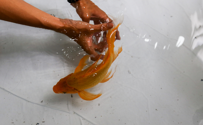 Ngoài những con cá nhỏ, hiện chủ quán còn thả hơn 100 con cá chép Nhật loại lớn. "Sắp tới tôi sẽ thả thêm vì loại cá này khỏe, sống tốt trong điều kiện nước thường xuyên dao động do người ra vào liên tục. Cá này cũng chỉ cần cho ăn một tuần một lần là đủ", Hòa nói.
