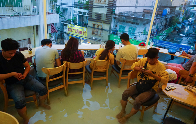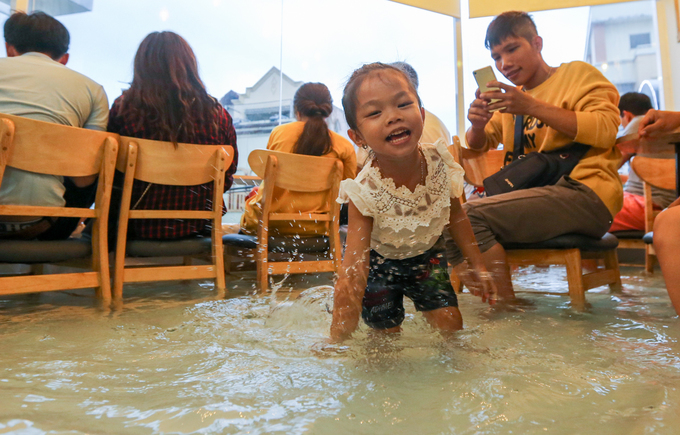 Quán luôn đông khách nhất là vào chiều tối, nhiều bạn trẻ và gia đình sẵn sàng đợi hàng giờ để trải nghiệm cảm giác uống cà phê có cá bơi dưới chân. Những em nhỏ thích thú nghịch nước, bắt cá khiến nhân viên liên tục nhắc nhở để không ảnh hưởng tới người khác.
