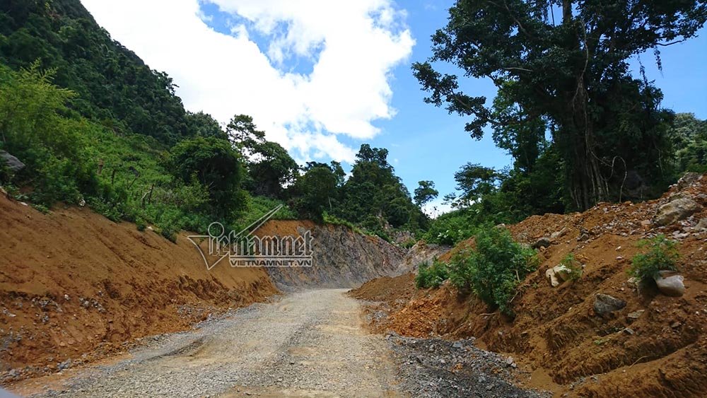 Một đoạn đường chưa hoàn thành, ngổn ngang đá sỏi