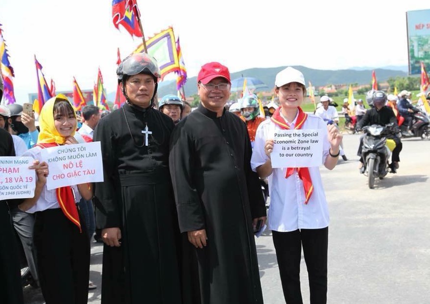 Hàng ngàn giáo dân tại một số giáo xứ tại hai tỉnh Nghệ An và Quảng Bình hôm Chủ Nhật 8 tháng 7 tuần hành chống luật đặc khu và luật an ninh mạng.