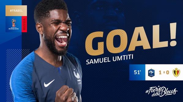 Goal ! Phút 51, số 5 Samuel Umtiti đánh đầu vào lưới.