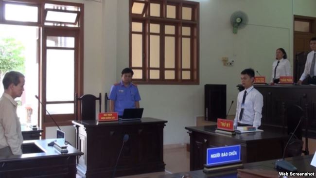 Mục sư Đinh Diêm tại phiên tòa ngày 12/7/2018 ở tỉnh Quảng Ngãi - Photo VTV