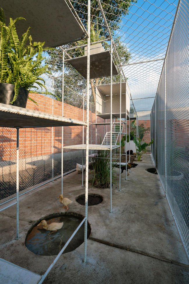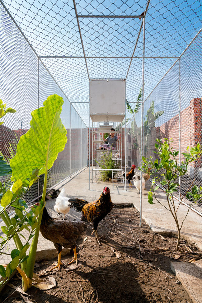 Kiến trúc sư đã tính toán kĩ lưỡng để chiếc chuồng vừa đảm bảo cho hoạt động của đàn gia cầm, vừa tương thích với diện tích đất trống, đồng thời có không gian để lũ trẻ có thể khám phá bên trong.