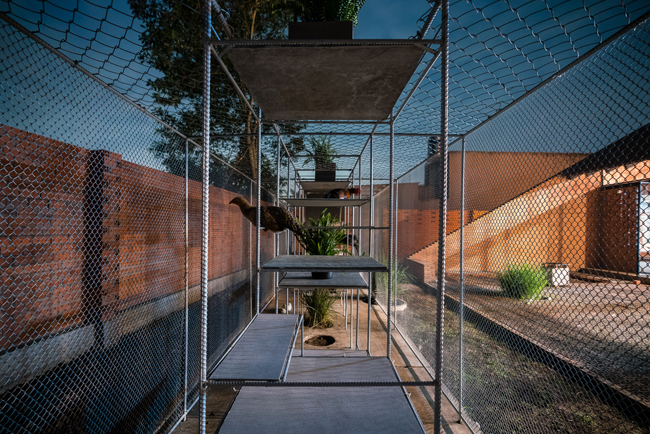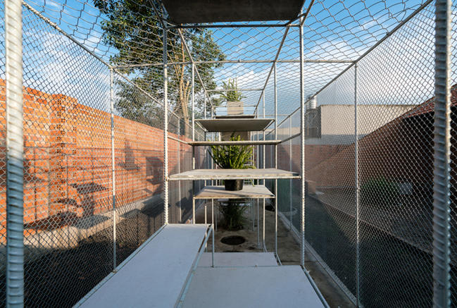 Sắt thanh, lưới thép mắt cáo và bê tông là các vật liệu chính tạo nên chiếc chuồng này.