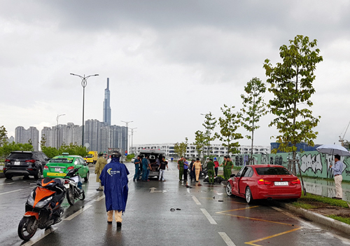 Một cô gái đang chạy xe ga gần cầu Thủ Thiêm thì bị một chiếc BMW tông mạnh từ sau, kéo thao khoảng 30 m khiến cô gái tử vong tại chỗ.