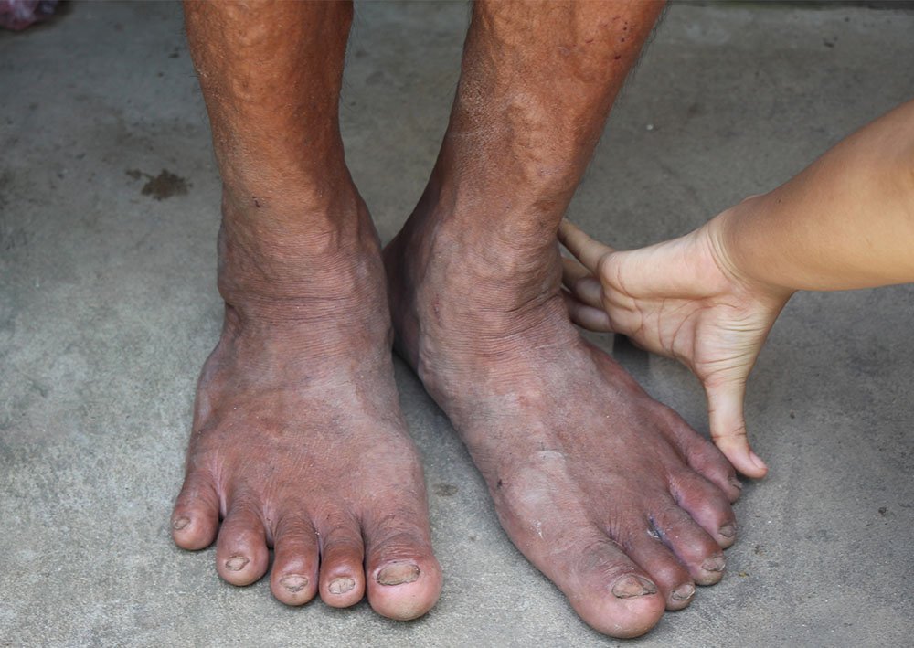Trước đây, thấy con trai đi chân không bị vật nhọn đâm, cắt chảy máu chân, ông Hoá thấy tội nghiệp nên thuê thợ đến nhà cắt vỏ máy cày làm dép nhưng chỉ mang được vài ngày là hư. Từ đó đến nay ông Y đều đi chân trần.