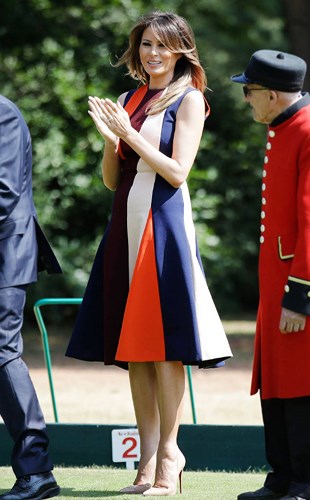 Chiếc đầm màu kem thanh lịch của Roland Mouret dường như sinh ra là để dành cho bà Trump. Chiếc thắt lưng là phụ kiện hoàn hảo để Melania khoe vòng eo con kiến.